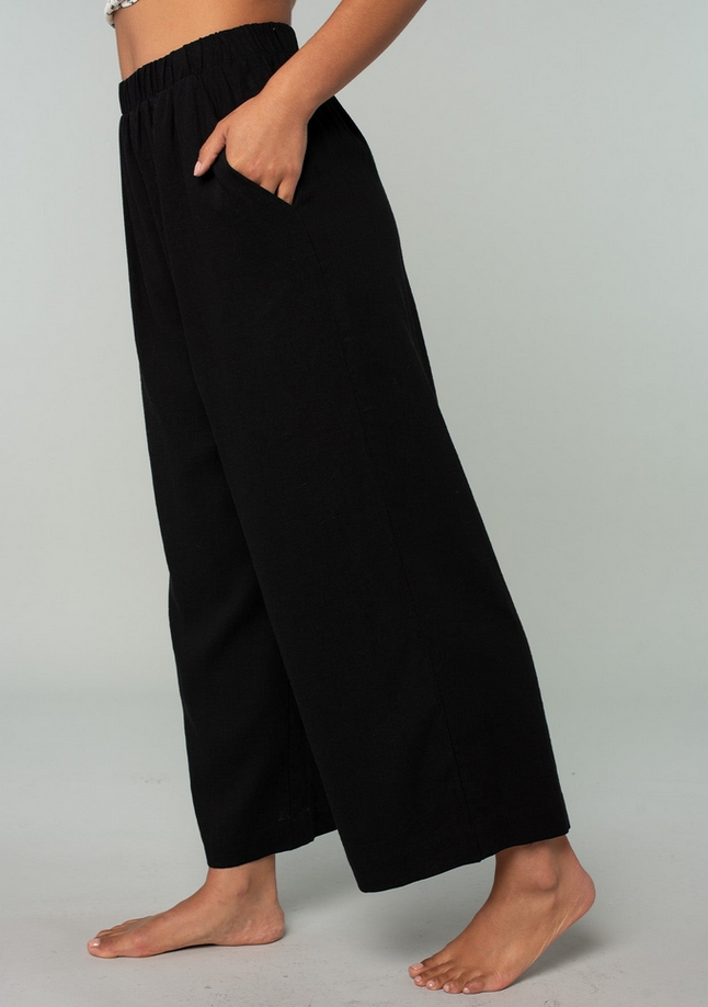 Lightweight with a natural texture, they offer the airy feel of linen with the softness of cotton—perfect for warm weather, travel days, or casual polished dressing. The versatile black color makes them easy to style with everything from tanks and tees to breezy blouses and lightweight sweaters.