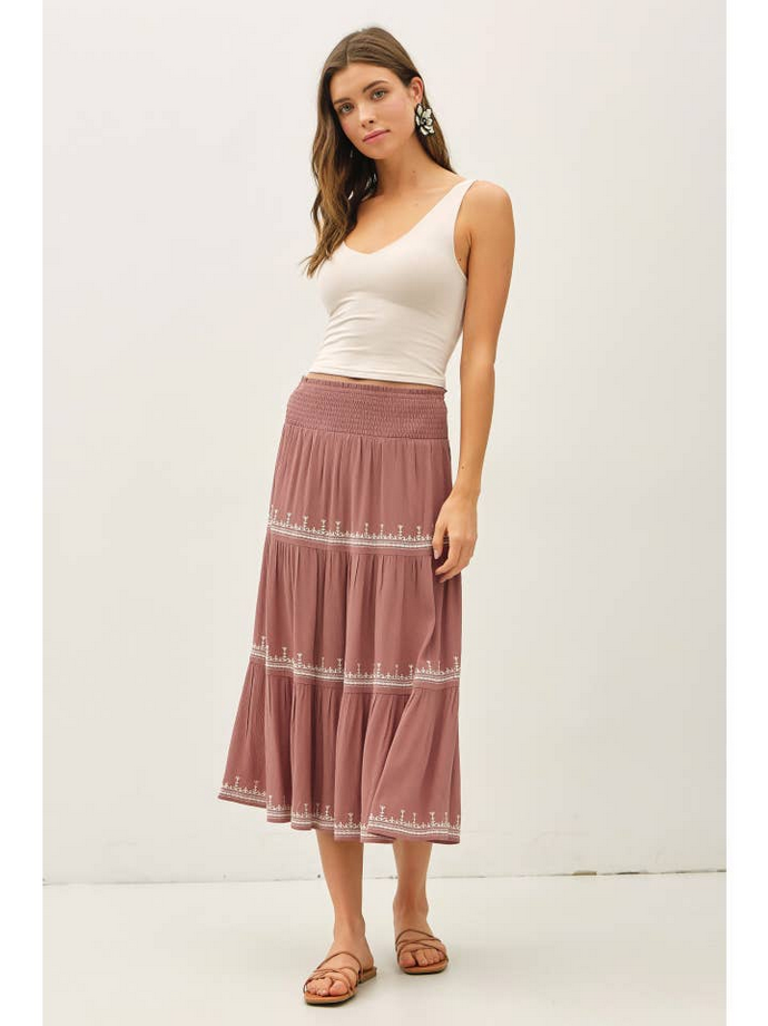 Embroidered Detail Tri-Tier Midi Skirt