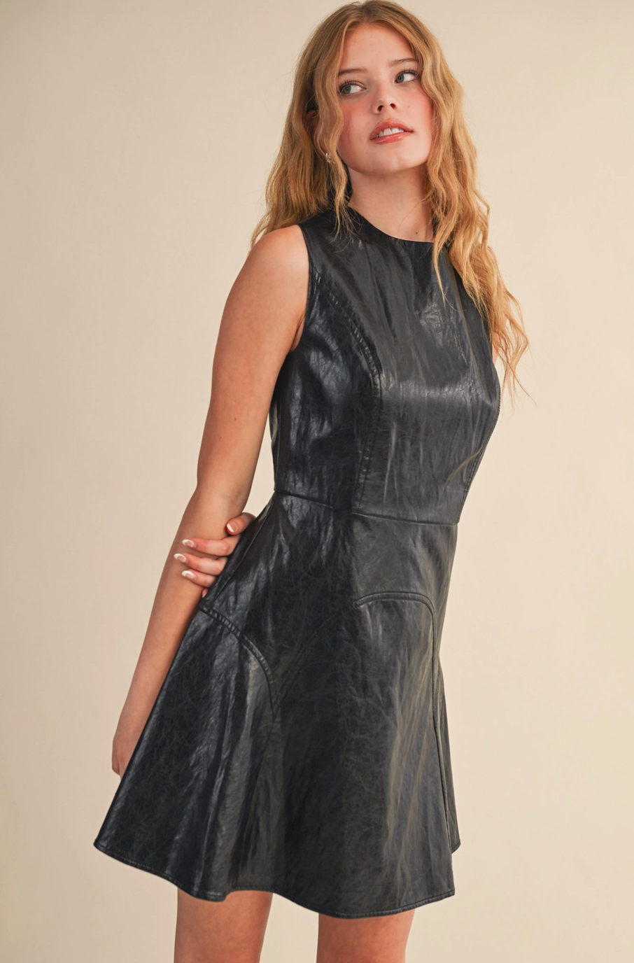 Create an accountThis sleek Faux Leather Flared Mini Dress from & Merci is the ultimate blend of edgy and feminine. Designed in a buttery soft vegan leather with a subtle sheen, this flattering silhouette features a tailored bodice and seamed flare skirt that skims the hips just right. The high neckline adds a touch of modern polish, while the sleeveless cut keeps it cool and layer-ready. Style it solo with heels for a night out or pair with a cropped jacket and boots for an effortlessly cool daytime look.