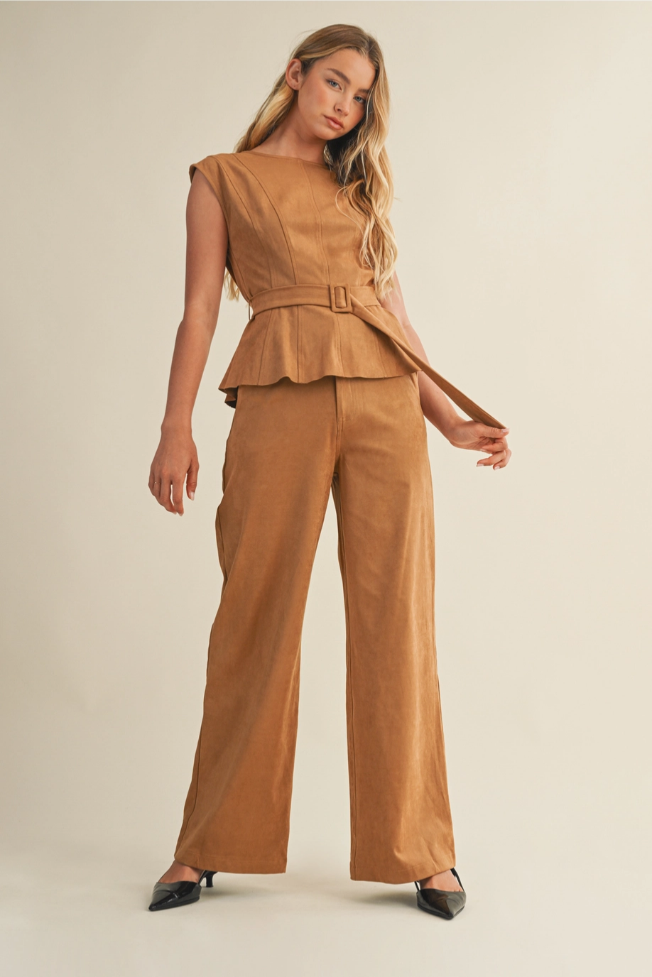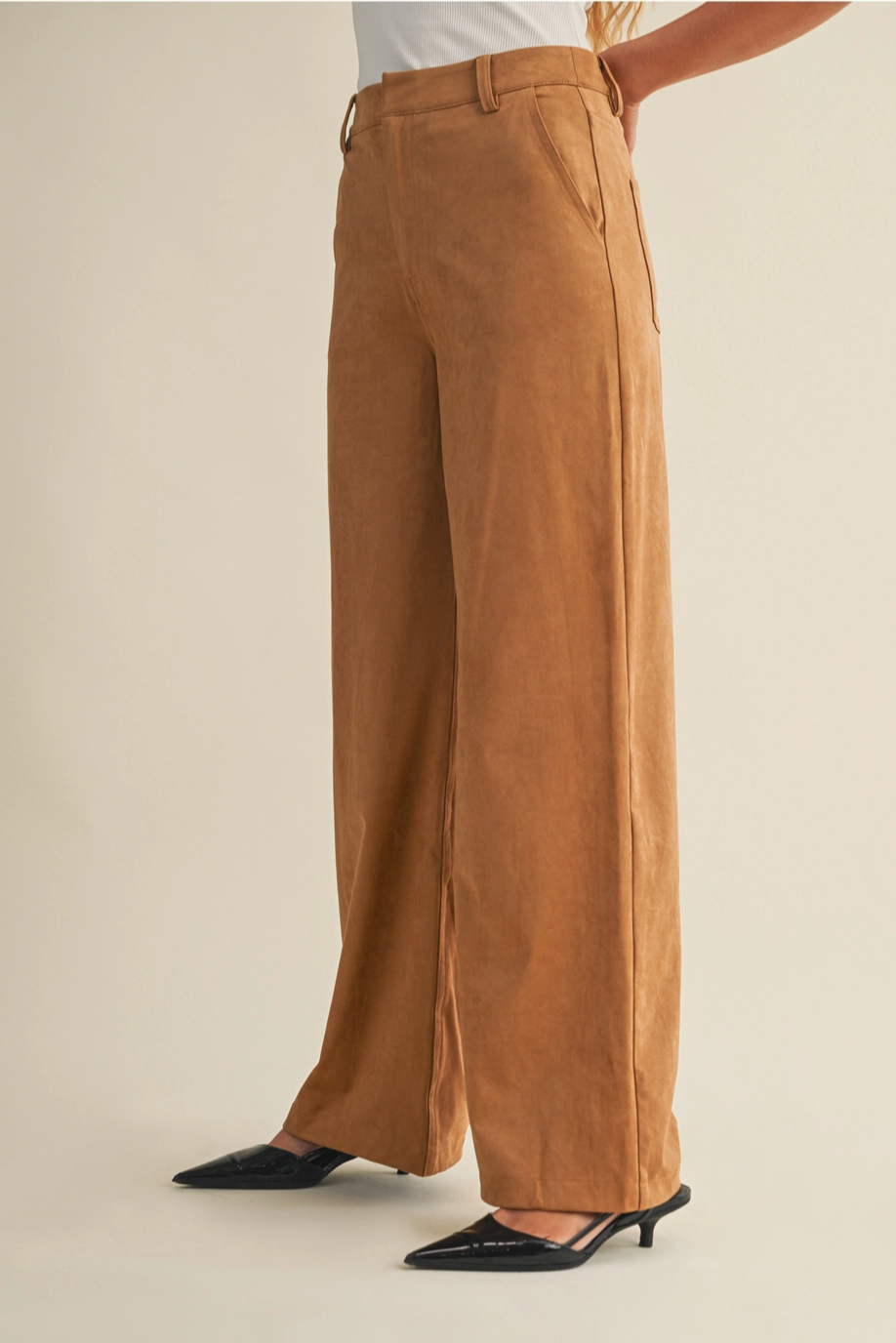 Create an accountCrafted in a rich camel hue, these faux suede straight-leg pants from Mustard Seed bring polished texture to your fall and winter wardrobe. The mid-rise fit and clean front create a flattering silhouette, while the soft faux suede finish adds warmth and comfort. Designed with just the right amount of stretch, they offer ease of movement without sacrificing style. Pair them with a cozy knit or sleek blouse for effortless sophistication.