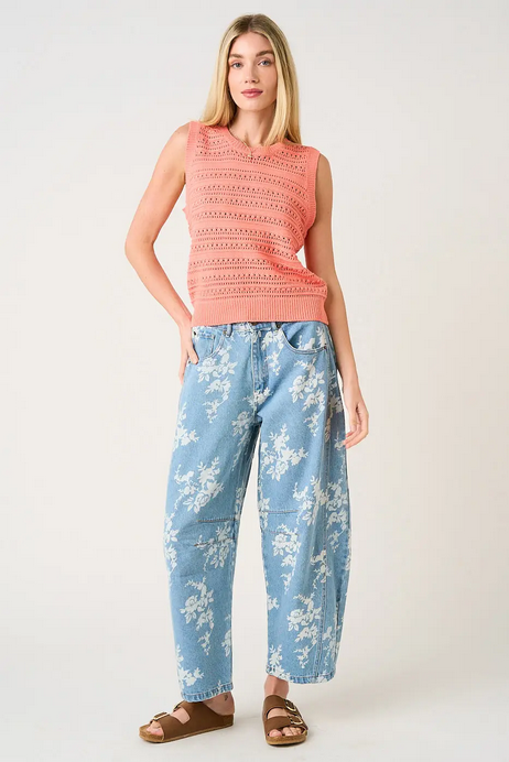 Create an accountRelaxed, playful, and effortlessly stylish, the Floral Print Barrel Jeans from Mittoshop bring a fresh twist to everyday denim. Featuring a soft floral print on lightweight denim, these jeans combine comfort and statement style in one easy piece.