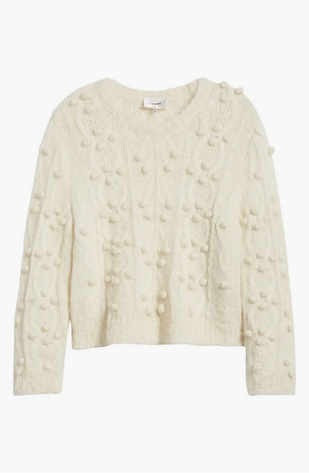 Elevate your cold-weather wardrobe with the FRAME Denim Alpaca & Wool-Blend Sweater. Crafted from a luxurious blend of alpaca, merino wool, and nylon, this cream sweater exudes effortless sophistication. The cozy pullover features a flattering silhouette that hits at approximately 21 inches from shoulder to hem. Perfect for layering or wearing on its own, this sweater embodies the brand's ethos of dressed-up casual with European influences. Dry clean only. Imported. Model is 5'10 and is wearing a size XS. Measurements may vary slightly by size.