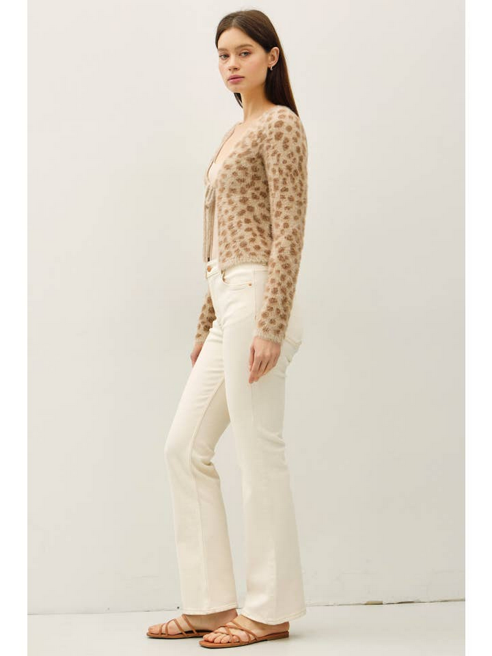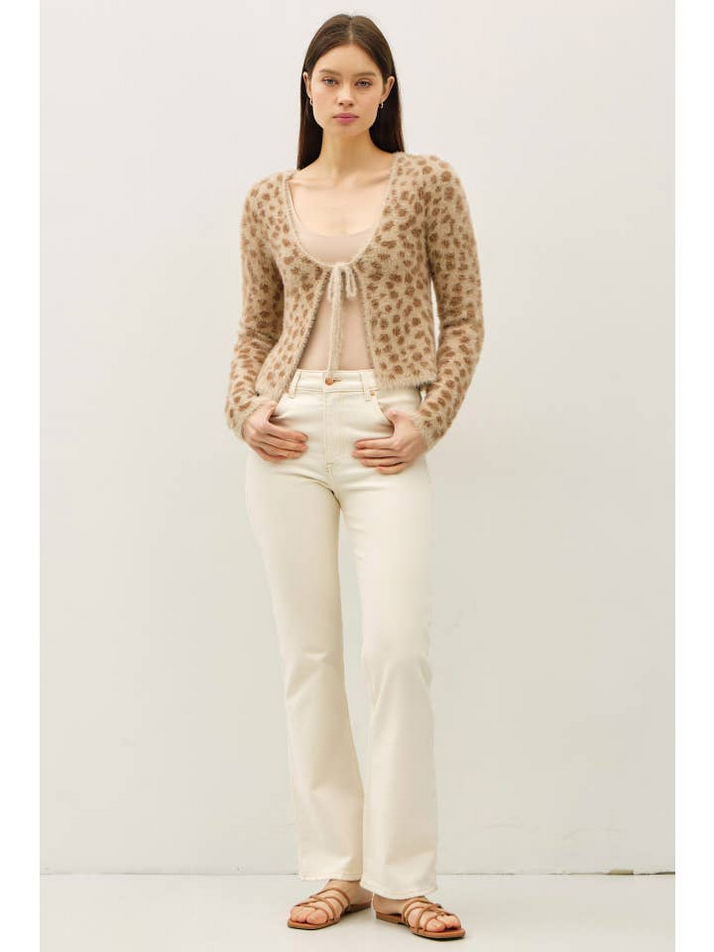 Create an accountPlayful texture meets feminine edge in the Fuzzy Leopard Jacquard Front Tie Cardigan from Be Cool. Designed in a soft-touch nylon blend with an allover leopard pattern, this lightweight fuzzy knit delivers cozy warmth without bulk.
