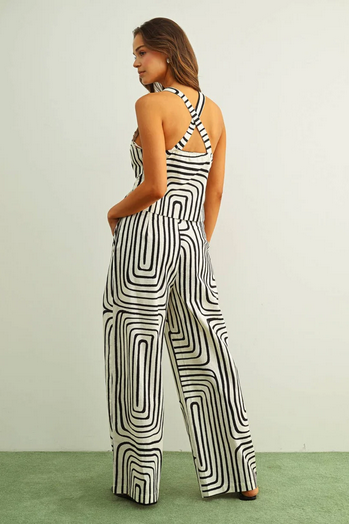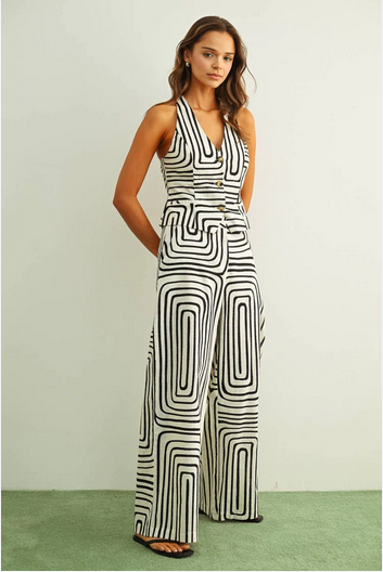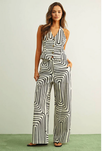 Create an accountMake a statement with the Grid Print Wide Leg Trouser from Miou Muse. Designed in a bold black and white geometric print, these eye-catching pants bring modern art-inspired style to your everyday wardrobe.