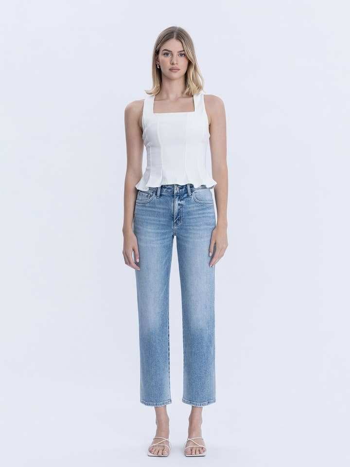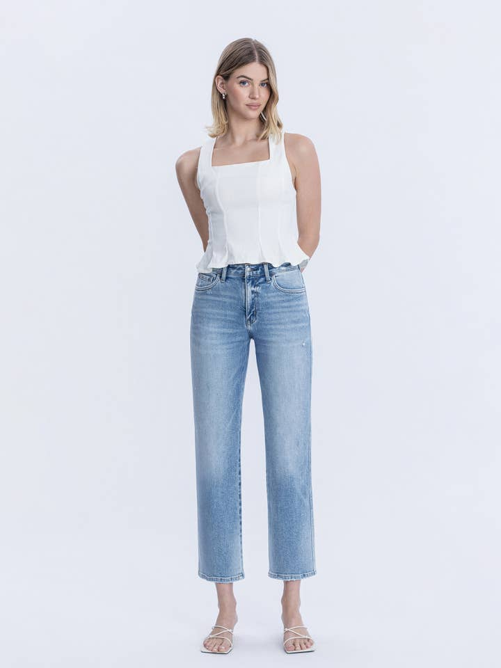 Create an accountClean, classic, and endlessly wearable, the High Rise Ankle Straight Jeans from Flying Monkey are the perfect everyday denim. Designed in the soft Blissful Symphony wash, this medium light wash offers a fresh, modern look that pairs effortlessly with everything in your wardrobe.