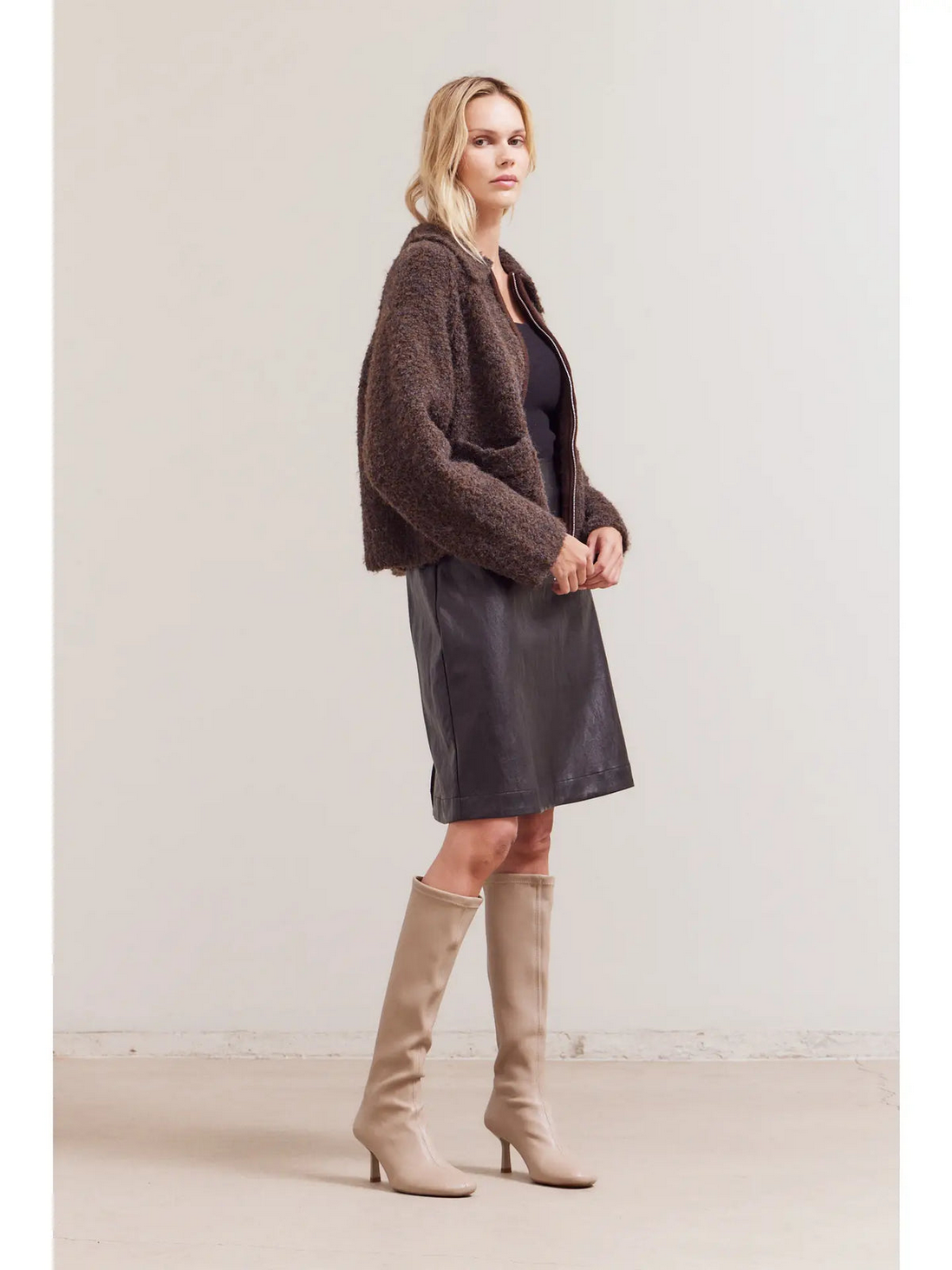 Create an accountElevate your layering game with this textured, cropped zip-up jacket from Grade & Gather. Crafted from a cozy boucle knit, it features a soft, plush finish, a clean zip-front closure, structured collar, and functional front patch pockets. With its earthy espresso brown hue and slightly boxy silhouette, this jacket brings effortless sophistication to casual looks. Throw it on over a slip dress or style it with high-waisted denim for a luxe, tactile finish.