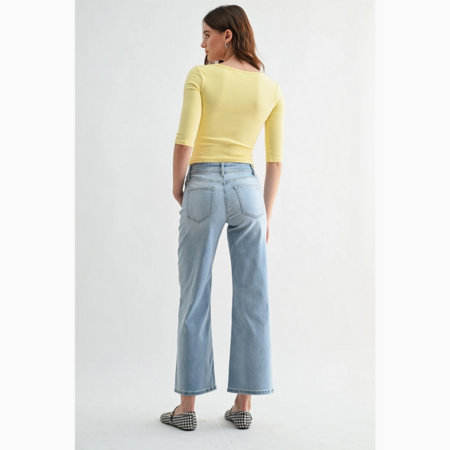 Create an accountEffortlessly cool and endlessly versatile, the Mid-Rise Wide Leg Ankle Jeans from Mica Denim offer a modern take on classic everyday denim. Designed in a soft pale blue wash, these jeans feature a flattering mid-rise fit and a relaxed wide-leg silhouette that creates a clean, contemporary shape.