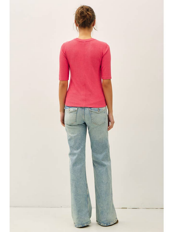A timeless basic with a luxe upgrade. This ribbed short sleeve top from Be Cool is made from a buttery-soft modal blend that hugs the body without clinging. The classic crew neckline and fitted silhouette make it the perfect layering piece or sleek stand-alone essential. Lightweight, stretchy, and endlessly versatile—you’ll want one in every color.