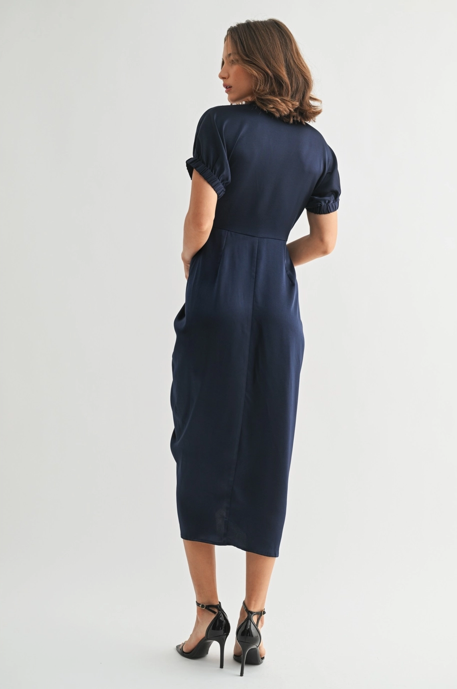 Create an accountEffortless elegance meets modern design in this navy satin midi dress by Fun2Fun.