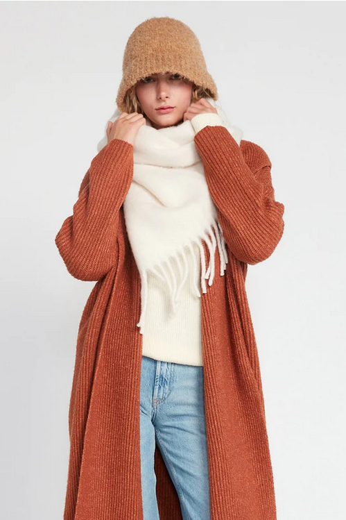 Solid Color Hem Fringe Grunge Scarf