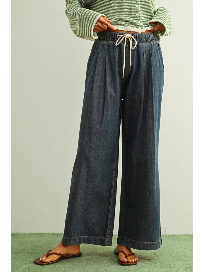 Create an accountRelaxed comfort meets effortless style in the Straight Wide Leg Elastic Waist Pants from Miou Muse. Designed in a soft denim-look fabric, these easy pull-on pants feature a comfortable elastic waistband with adjustable drawstring tie for the perfect fit.