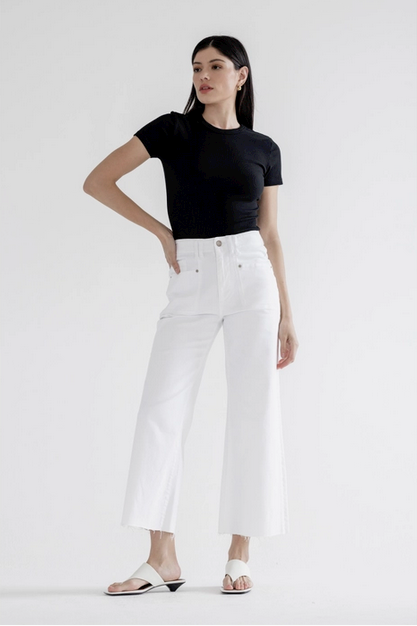 Crisp, clean, and endlessly versatile, the Super High Rise Wide Leg Pants from Mica Denim are a fresh take on everyday denim. Designed in a bright white wash, this pair instantly elevates any look—whether styled casually or dressed up.