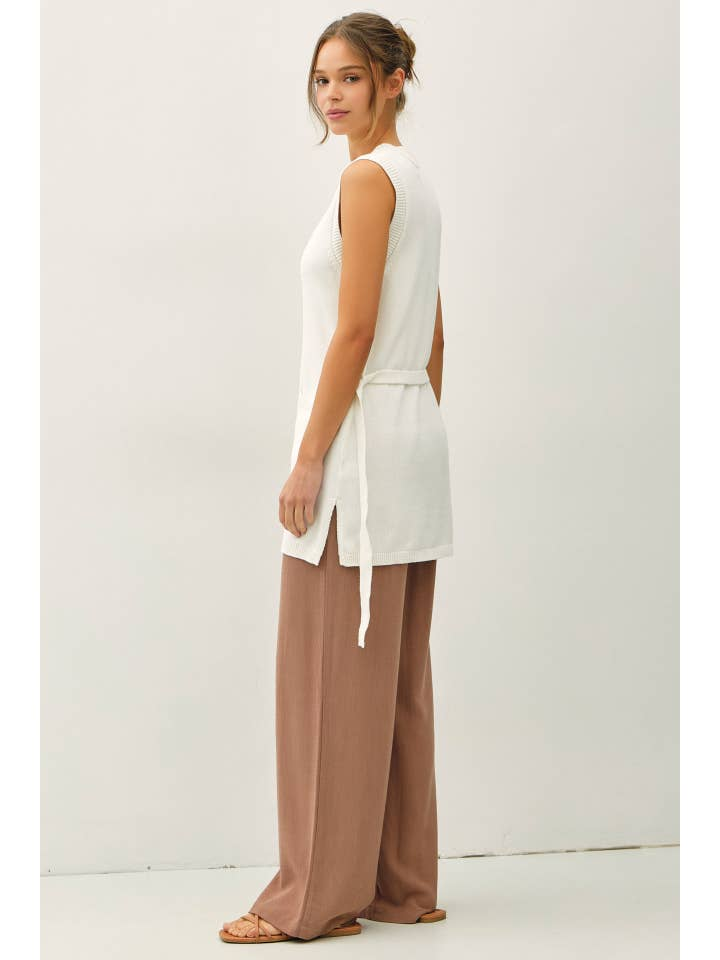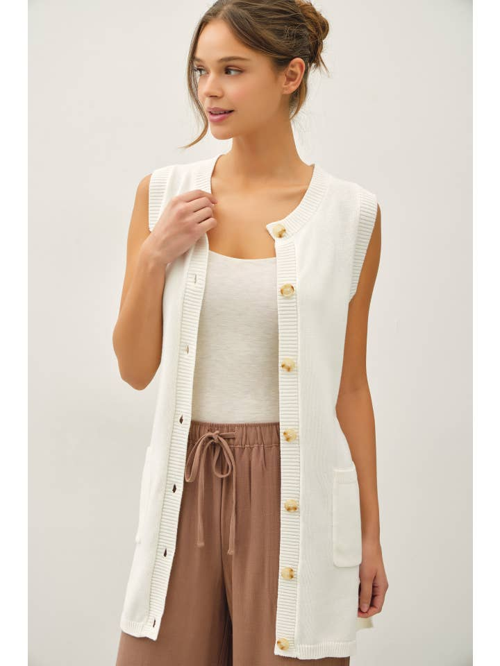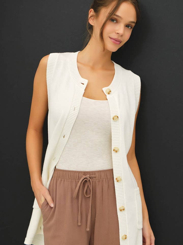 Perfect for transitional seasons, this vest pairs beautifully with wide-leg pants, denim, or skirts for an effortlessly styled look.